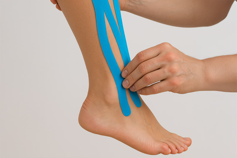 Taping ist eine physiotherapeutische Methode, bei der elastische oder unelastische Klebebänder gezielt auf die Haut aufgebracht werden, um Muskeln, Gelenke und das Bindegewebe zu unterstützen. Die speziellen Tape-Anlagen können Schmerzen lindern, die Beweglichkeit verbessern und den Heilungsprozess fördern, ohne die natürliche Bewegung einzuschränken. Sie werden individuell an die Beschwerden angepasst und kommen sowohl bei akuten Verletzungen als auch zur Vorbeugung zum Einsatz.